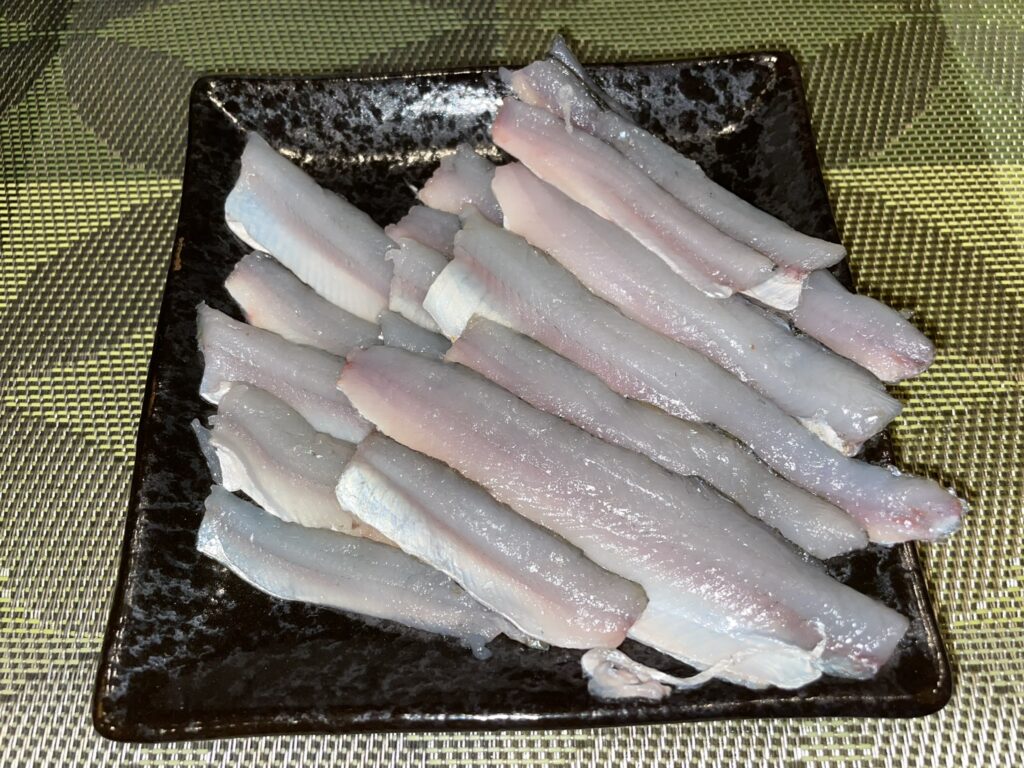ウグイは頭を落として、うろこ、内臓をきれいに取ります。3枚卸しにしてキッチンペーパーなどでしっかり水気を切ったら、