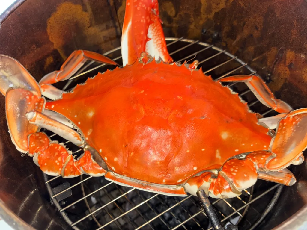 一晩冷蔵庫で寝かせたワタリガニを燻製します。